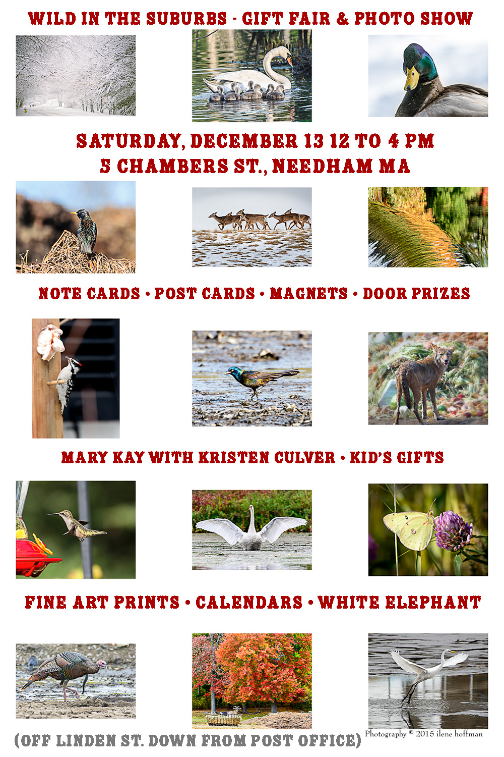 I am producing a Suburbs Gone Wild Photo Exhibit and Gift Fair on December 13th. It would be wonderful if you could stop in to say hello and see my new photographs and prints!